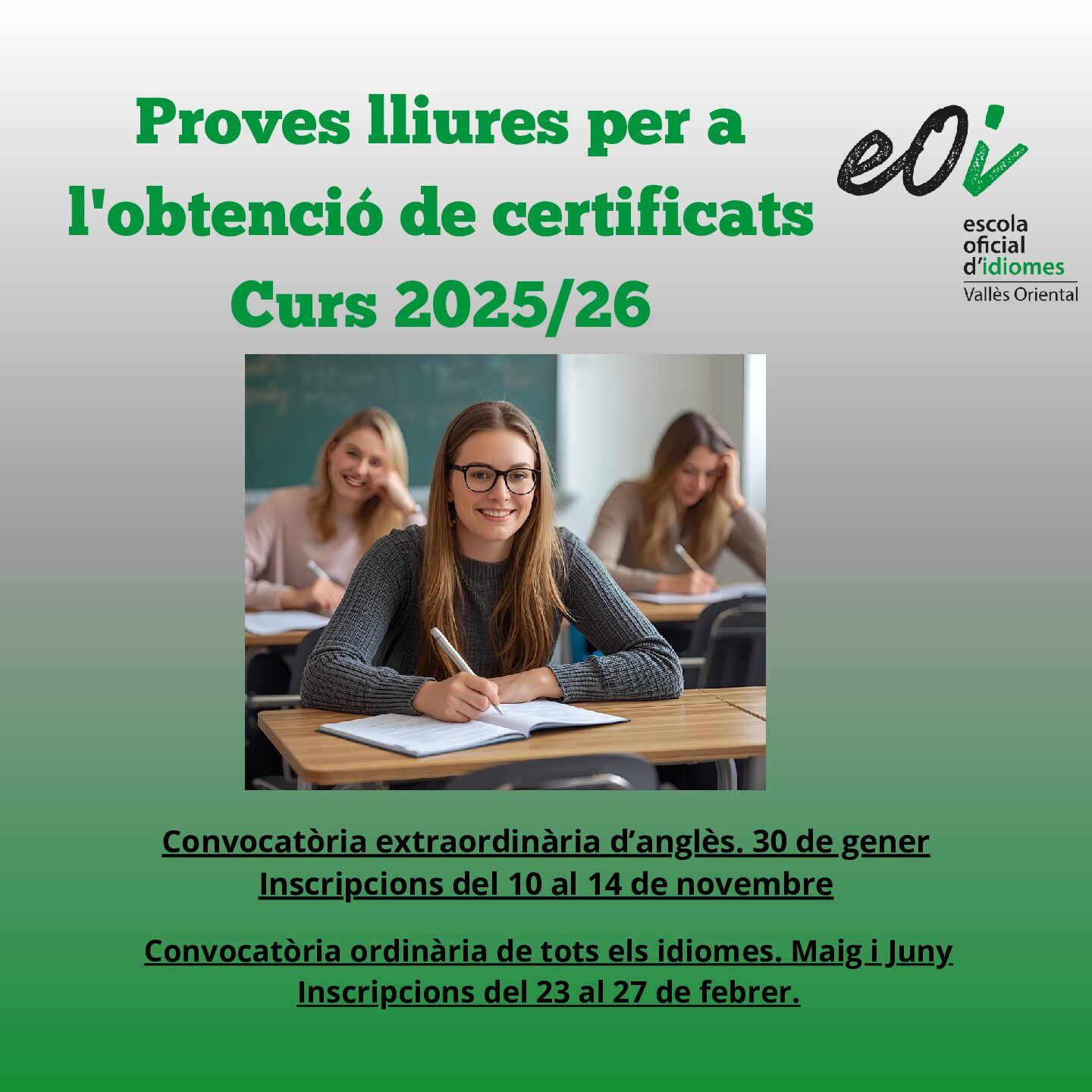 Ja et pots desarregar el teu carnet d’estudiant de l’EOI aquÃ.